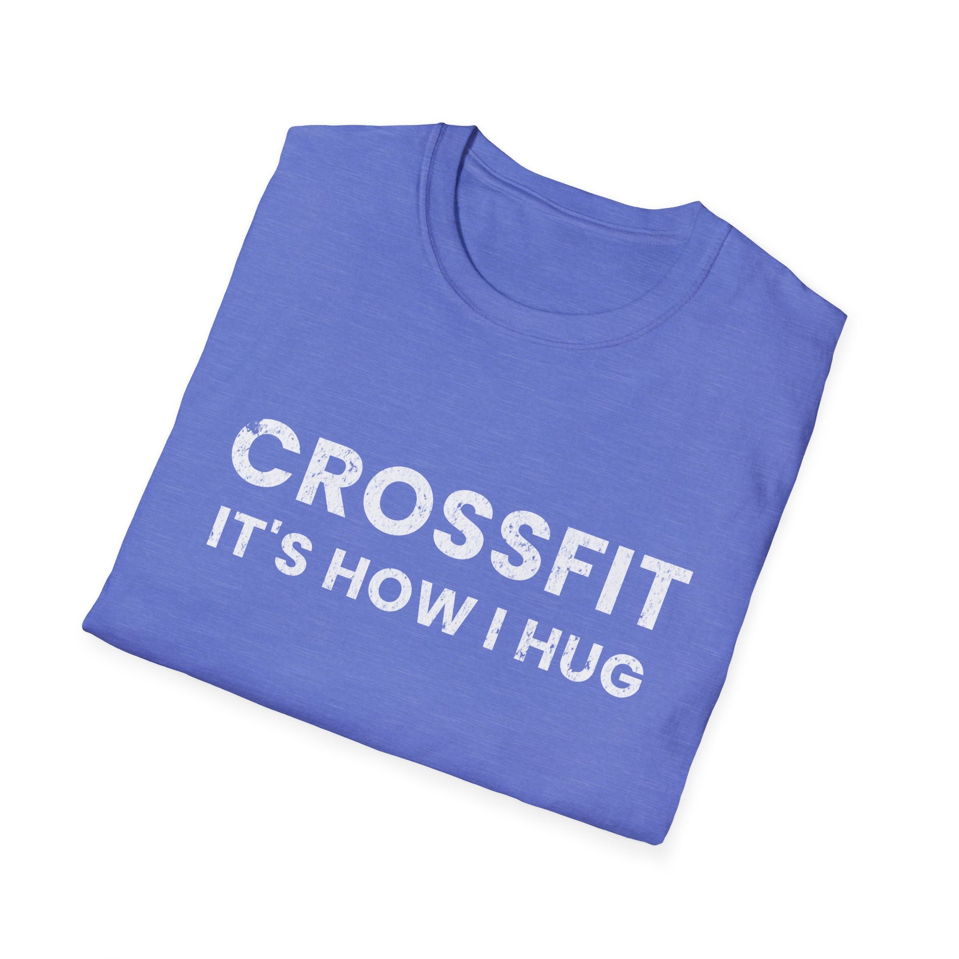 This Crossfit is How I Hug fitness T-shirt exudes a motivational and energetic vibe, perfect for fitness enthusiasts and gym lovers. It is ideal for those who love crossfit and want to showcase their passion for fitness. Great for gifting on birthdays, holidays like Christmas, and as a workout outfit.