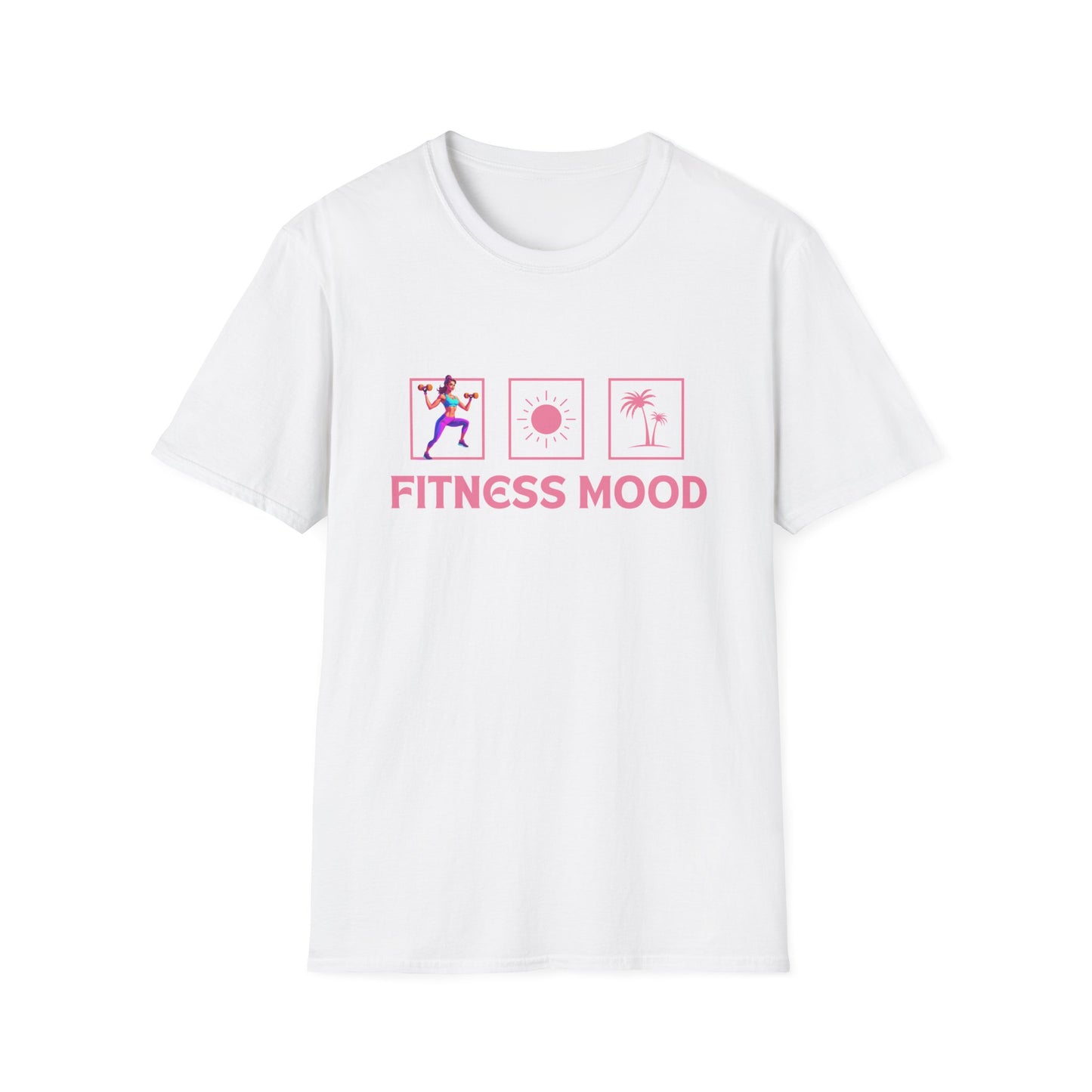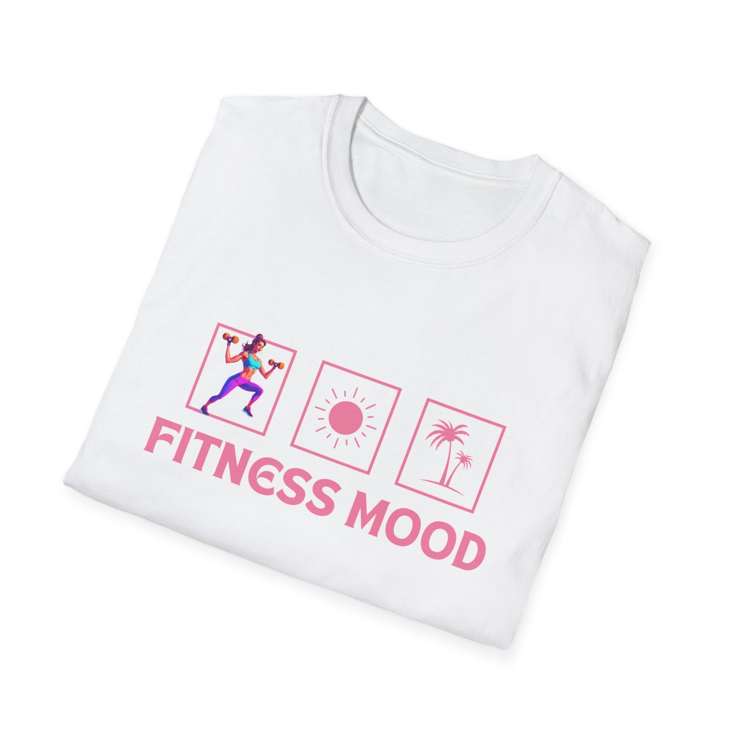 Malibu neon style gym t-shirt illustration of a lady doing jumping jacks while holding two dumbbells.