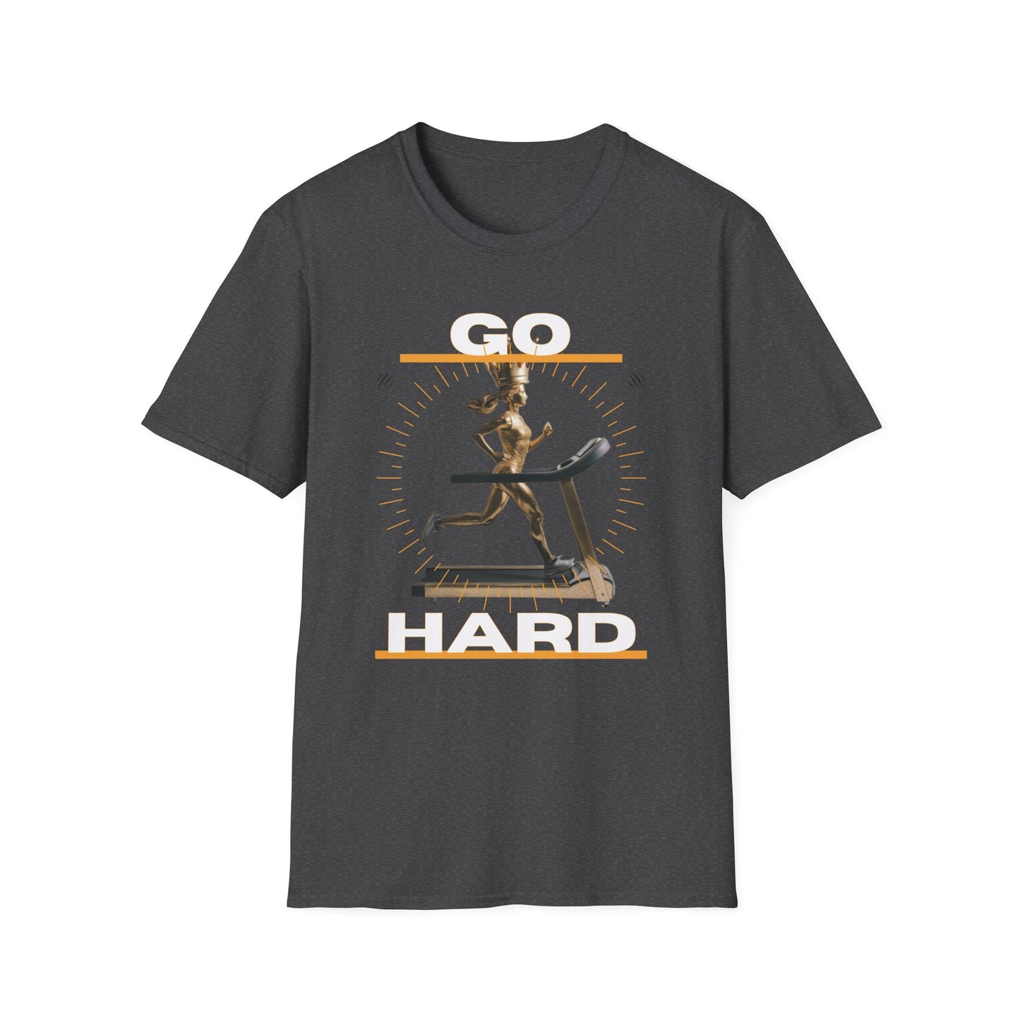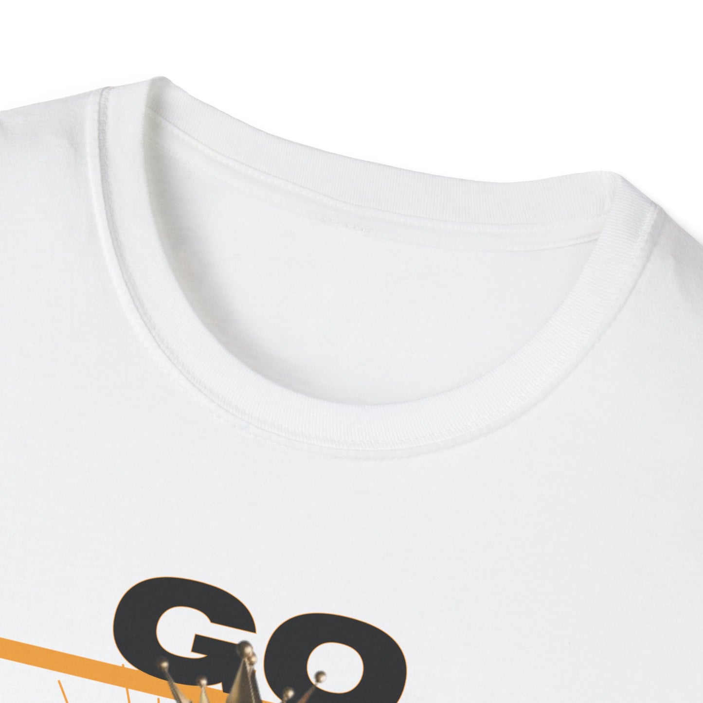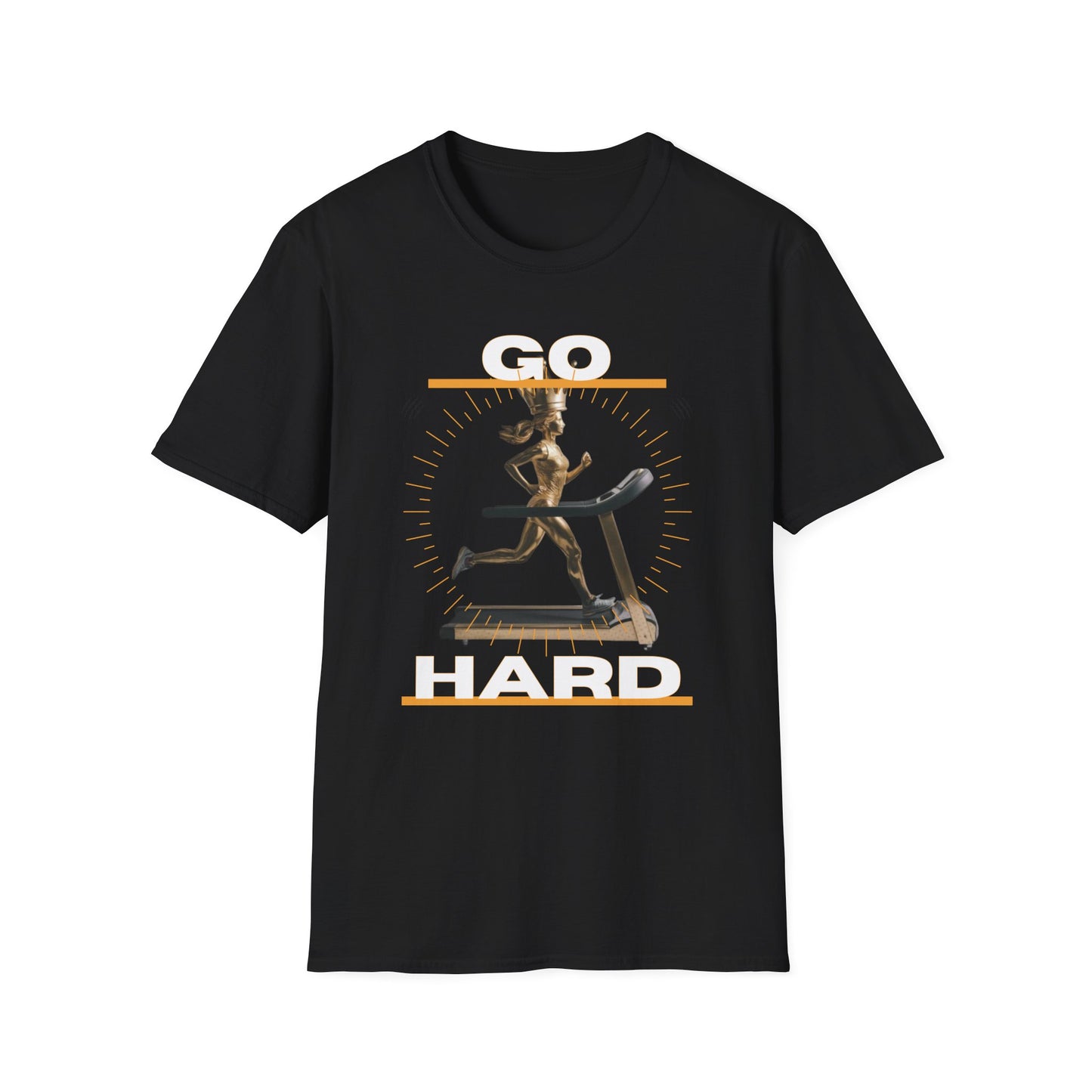 A golden sculpture t-shirt illustration of a lady running on a treadmill with a large queen crown on her head on a t-shirt background