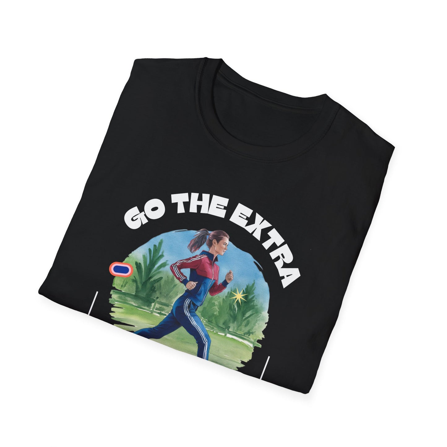 Water color art gym t-shirt illustration of a lady jogging in a tracksuit.