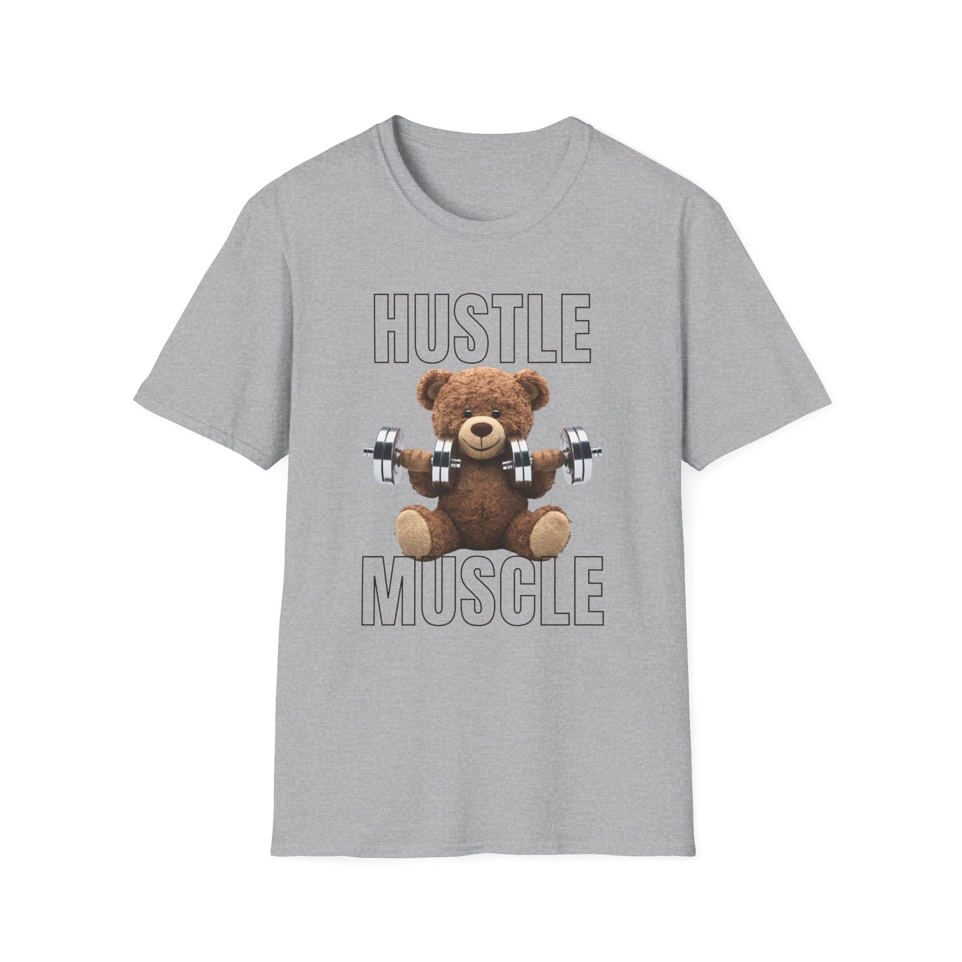 Picture render of a teddy bear lifting two dumbbells one on each side.