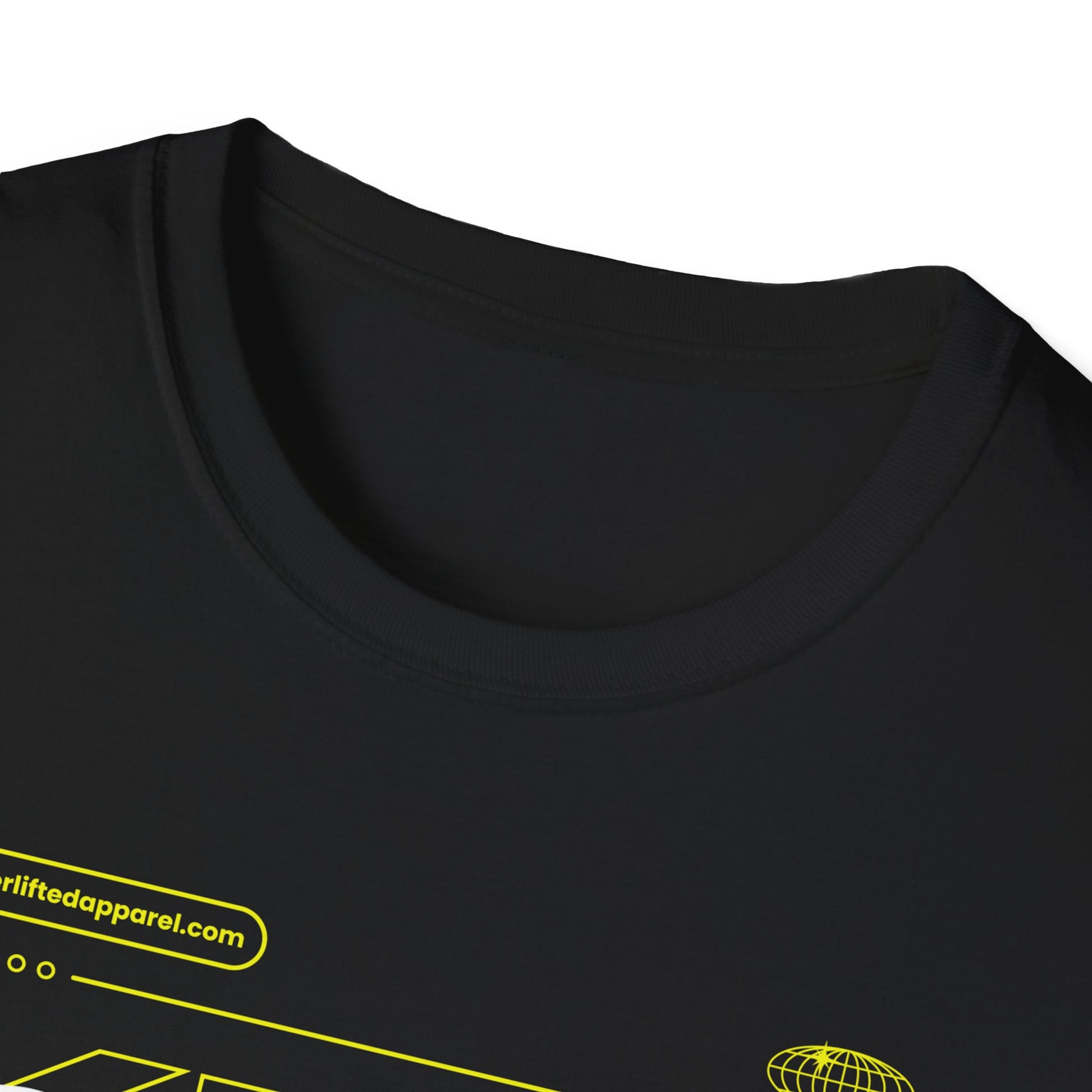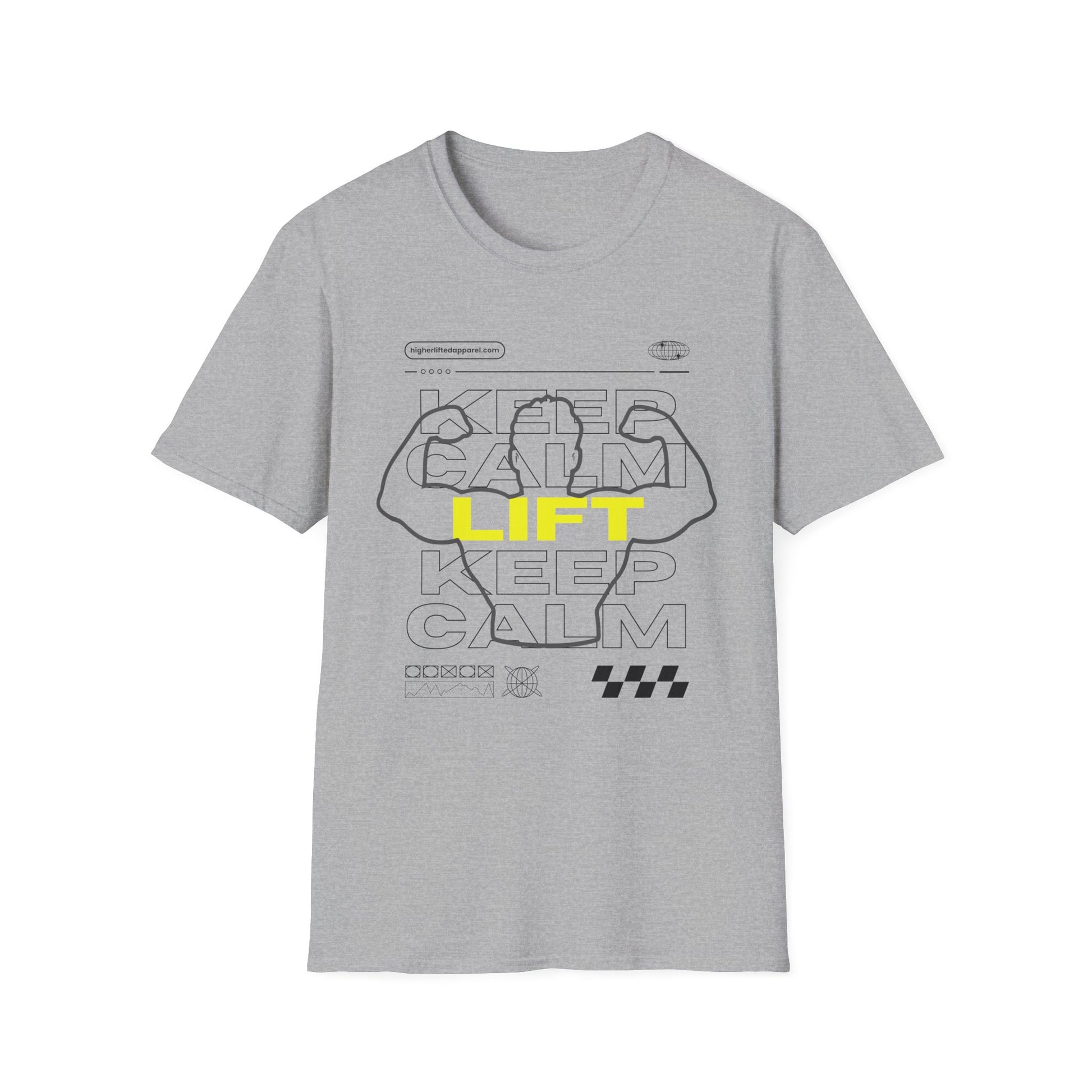 Outline silhouette gym t-shirt of a man flexing his muscles.