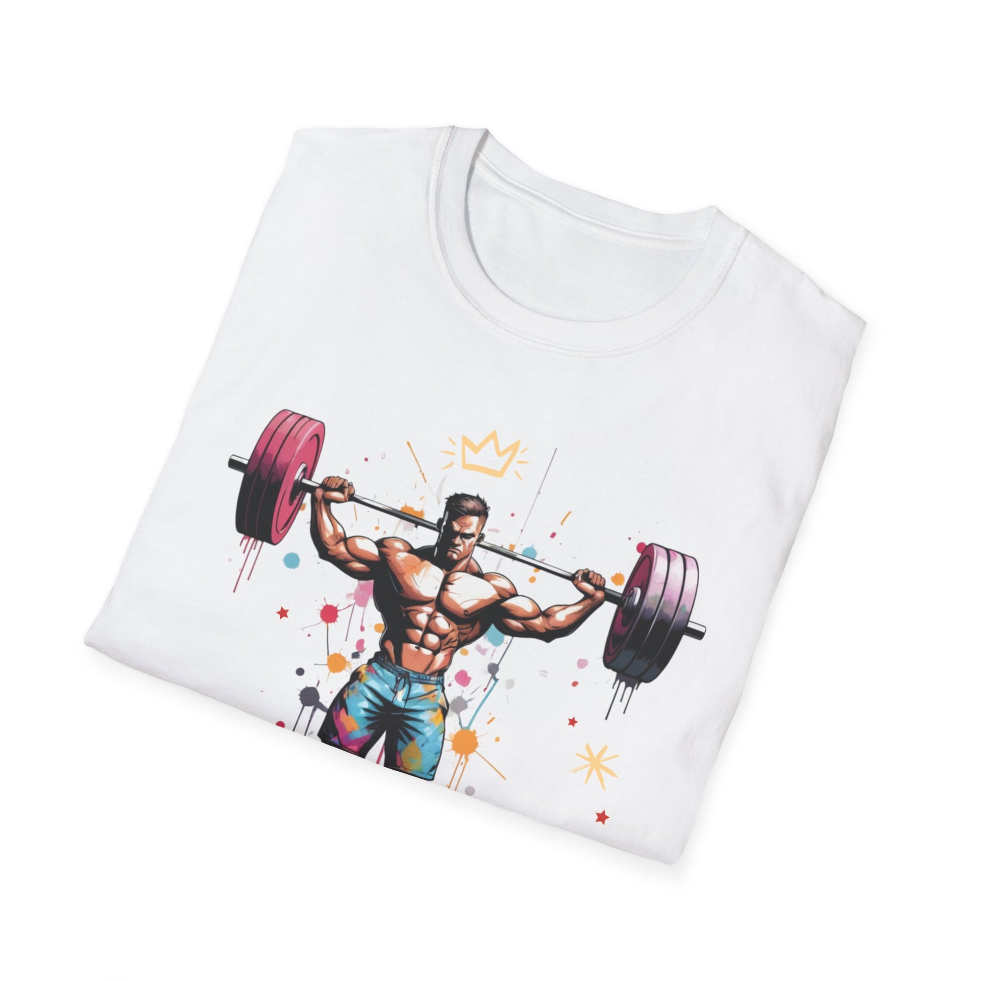 Graffiti art illustration of a man holding a barbell high with weights.