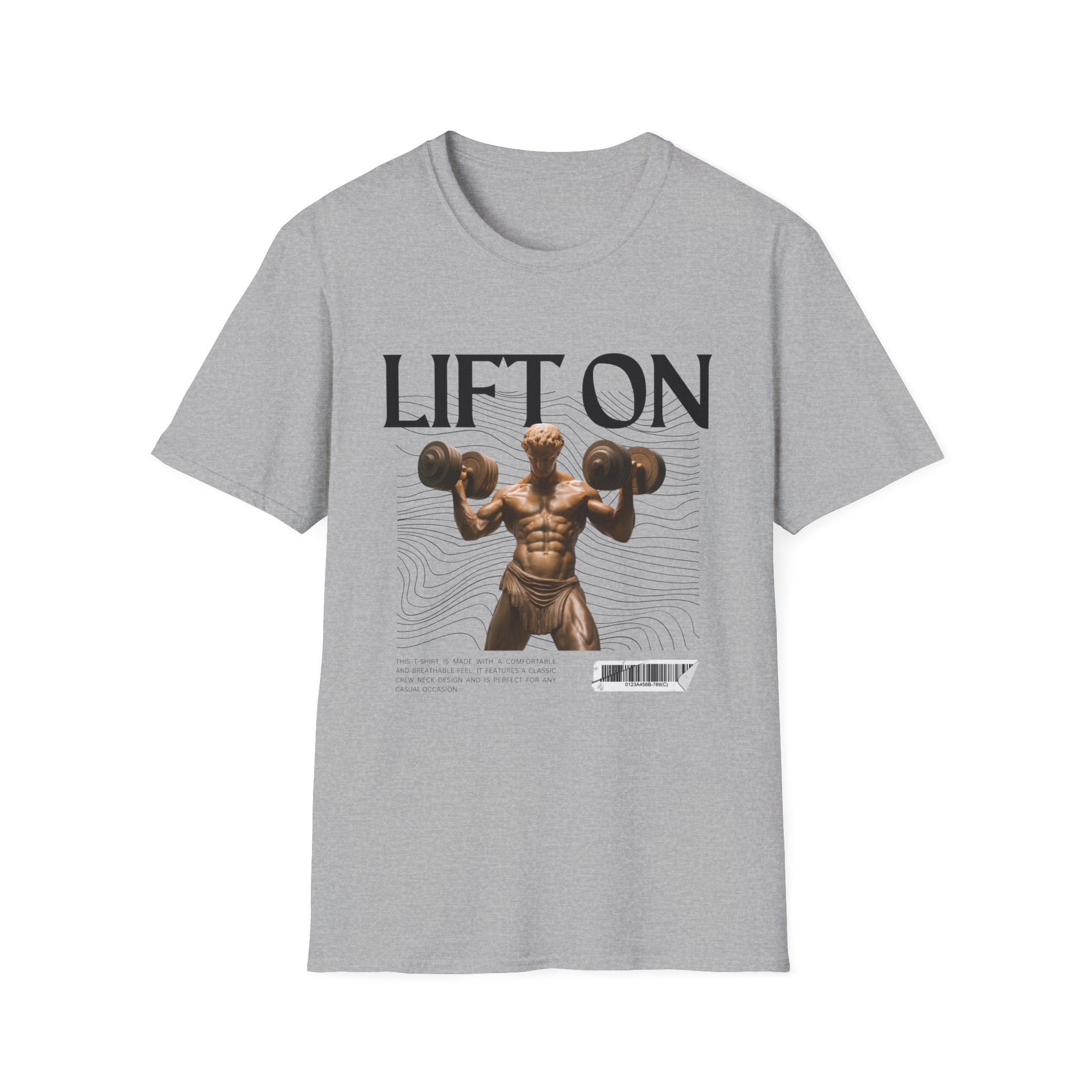 Gym t-shirt illustration with the motivational words: 'Lift On'.