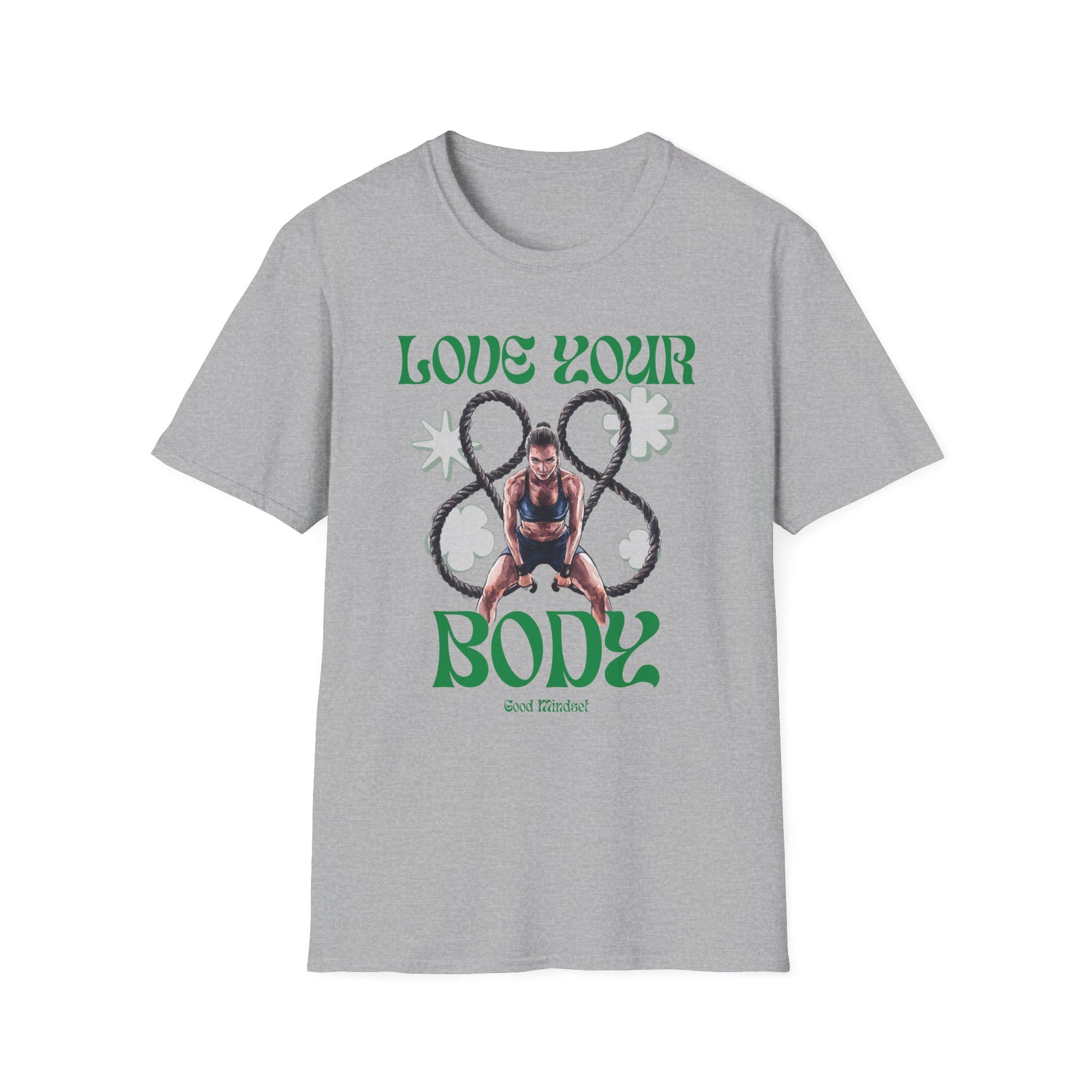 A stunning watercolor gym t-shirt illustration of a woman in a determined workout pose, holding onto two ropes that are looped and creating a figure-eight shape behind her. She is sweating and her face is slightly red from the exertion, emphasizing her dedication to her fitness. The watercolor technique creates a sense of fluidity and movement in the image.