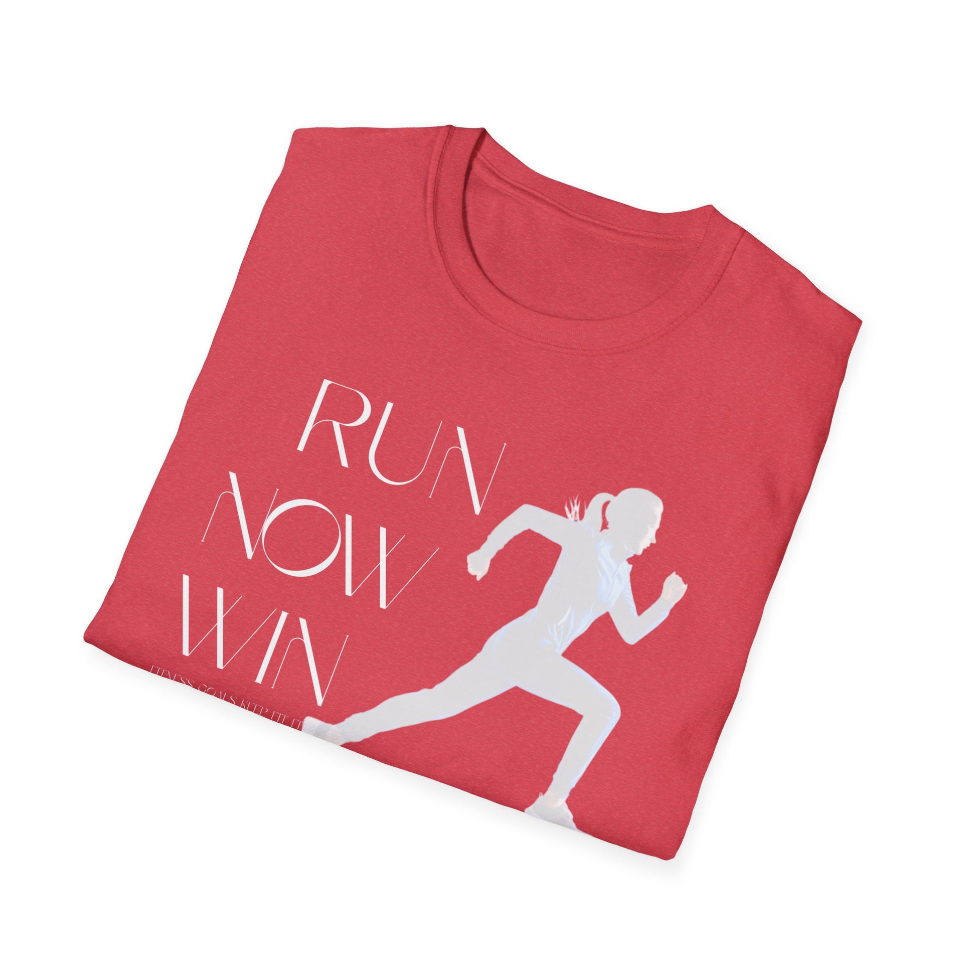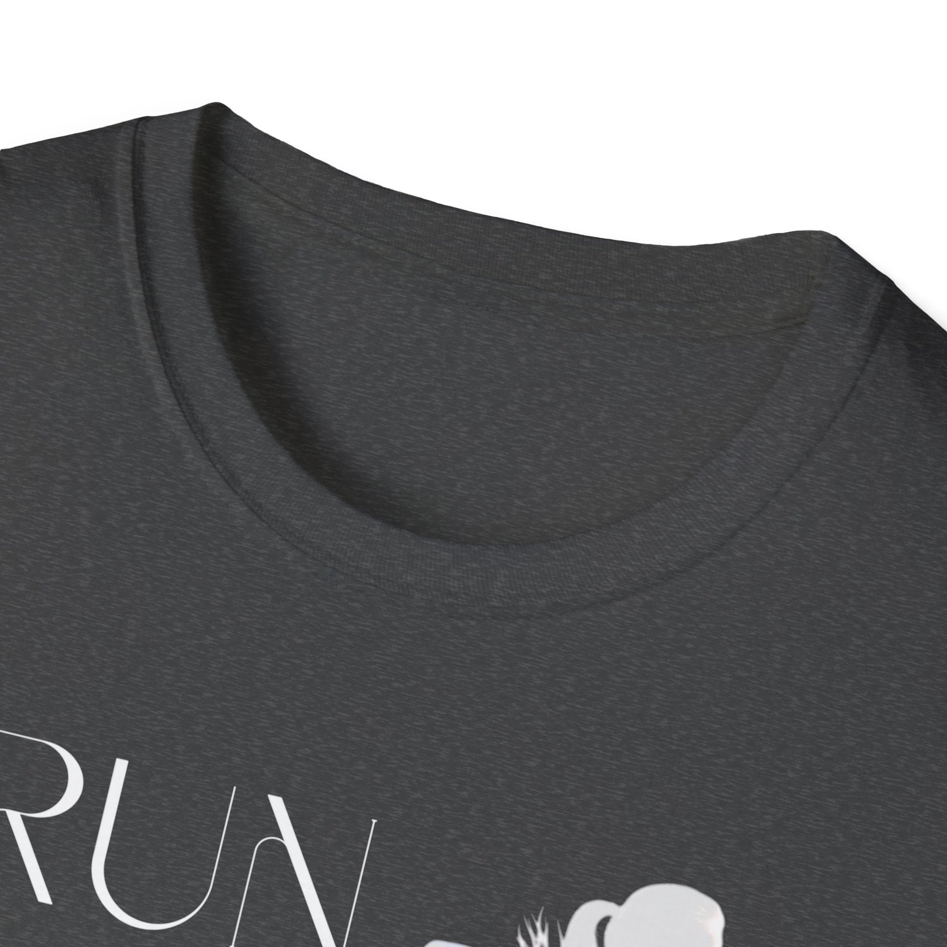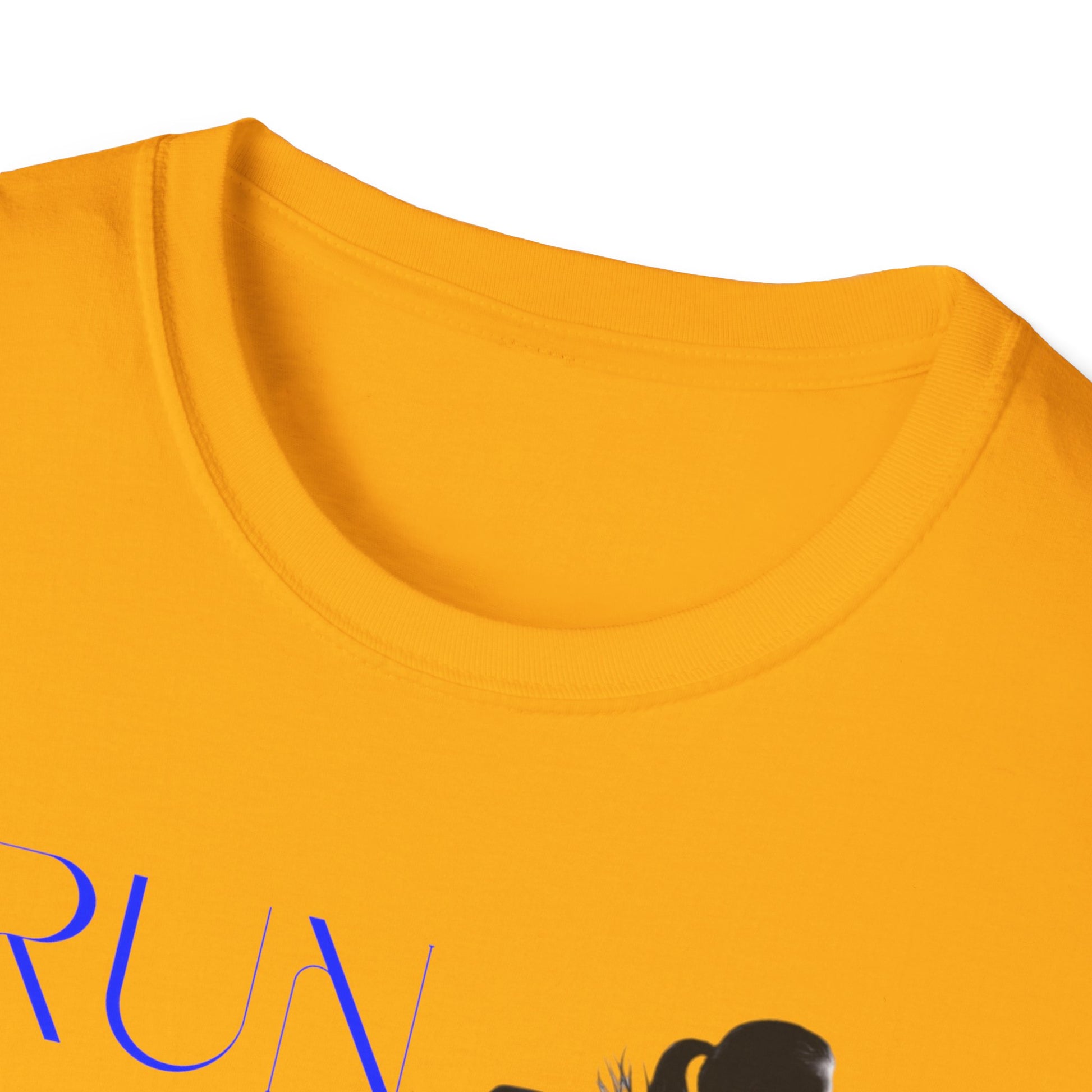 Colourfull flowery gym t-shirt illustration of a lady jogging in a tracksuit.