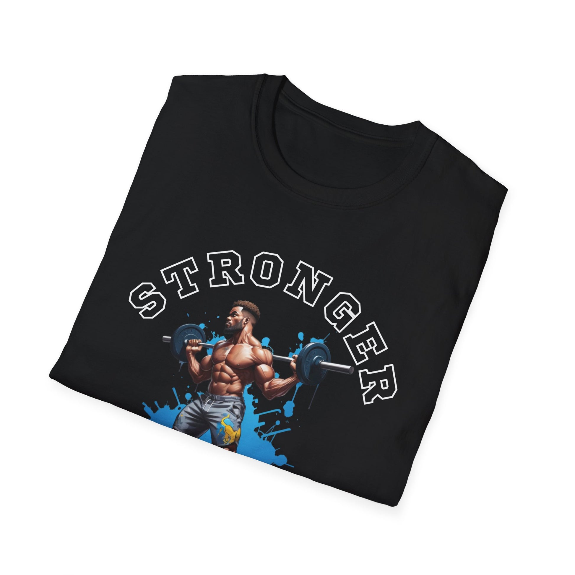Graffiti art gym t-shirt illustration of a man holding a barbell high with weights.