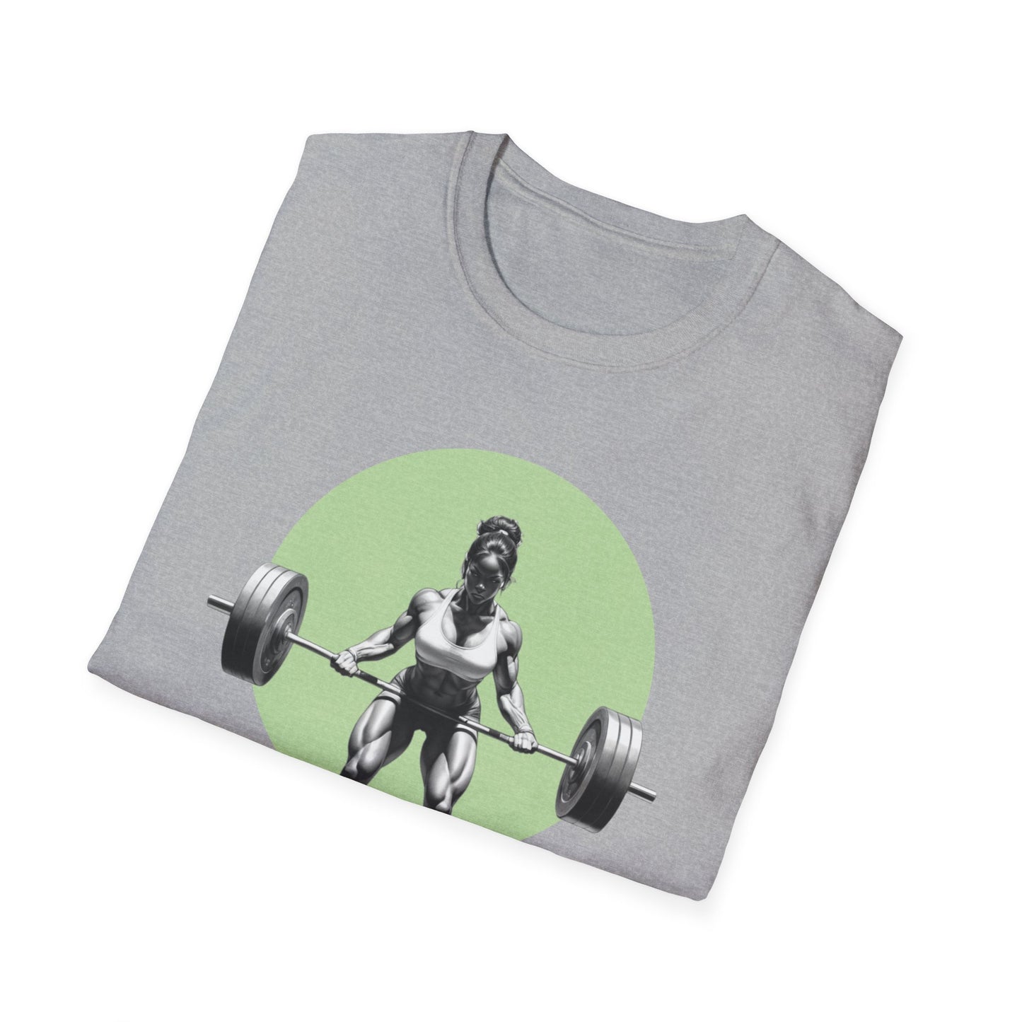 A striking, intaglio-style illustration, pencil sketch style gym t-shirt illustration, of a strong female athlete performing a deadlift with a heavy barbell. The lady's muscular formis accentuated by the dramatic shadows and bold lines typical of intaglio art. Her intense focus and determined expression are captivating. The pure white background emphasizes the contrast in the scene, creating a captivating and bold composition.Less