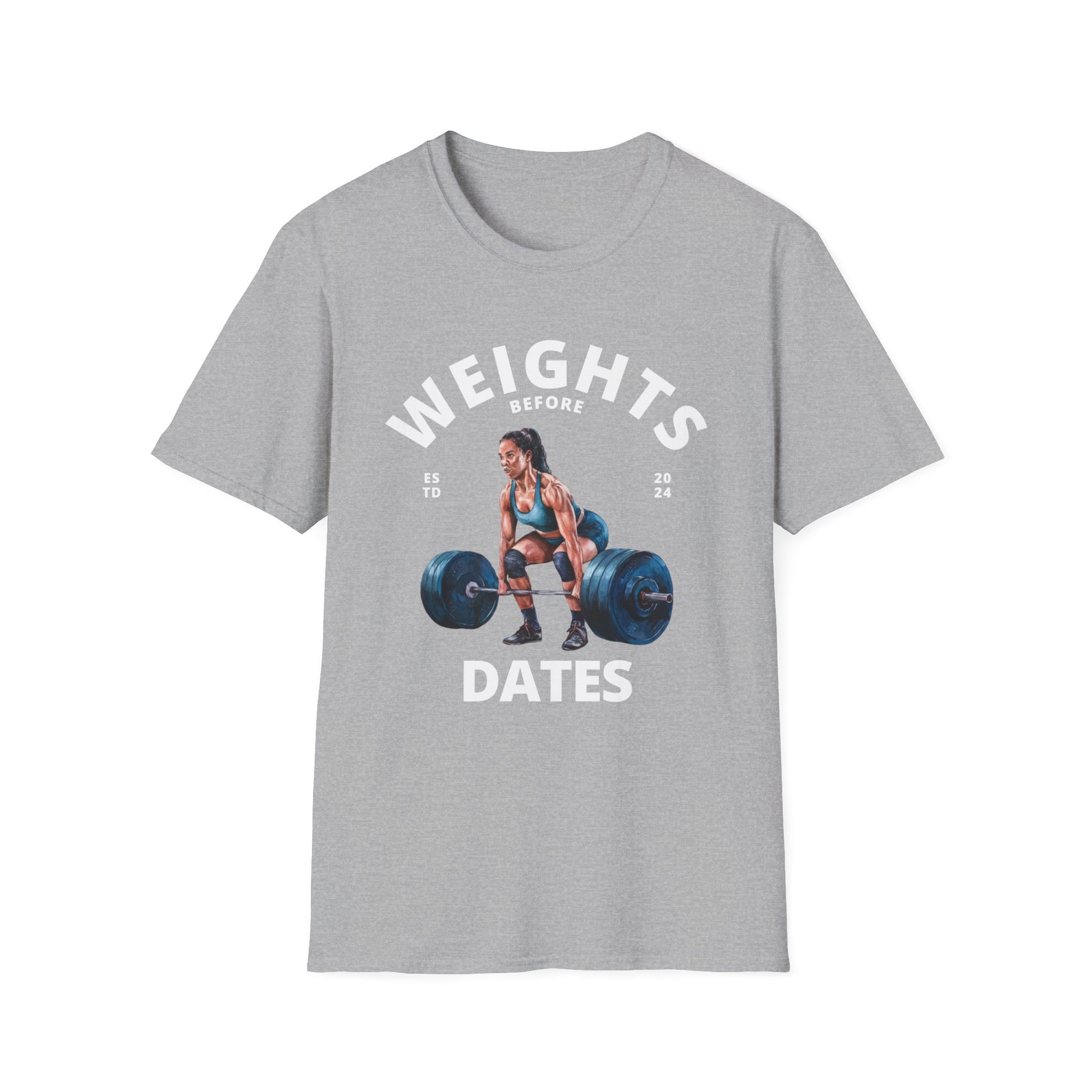 Water color gym t-shirt illustration, of a strong female athlete performing a dead-lift with a heavy barbell.