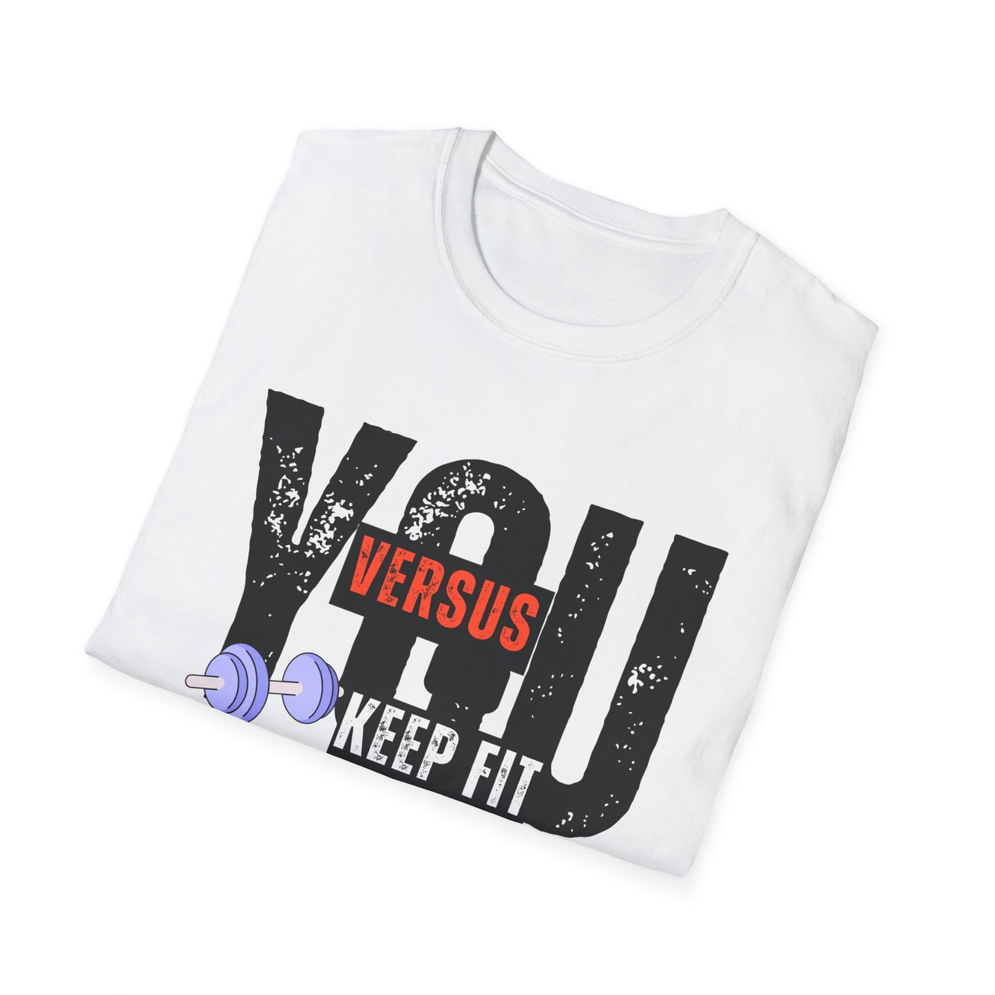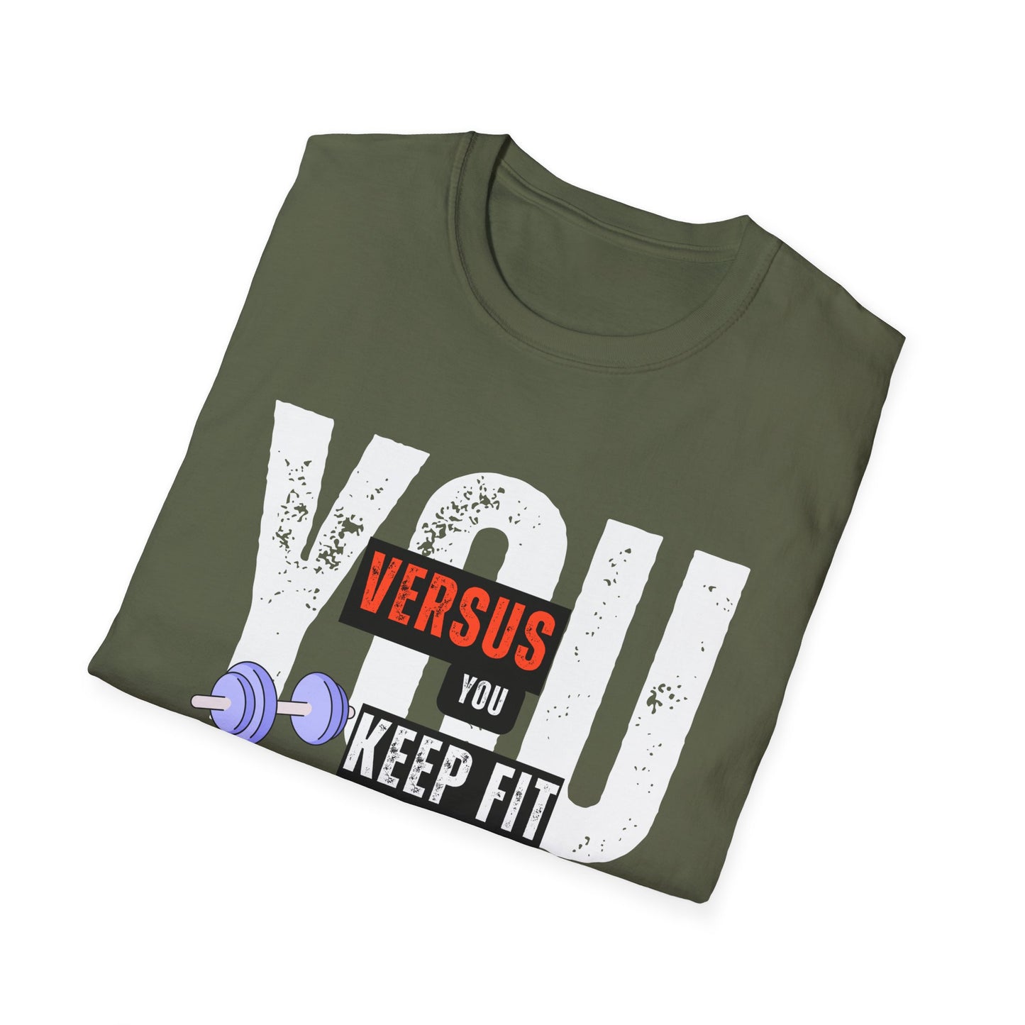 A captivating gym t-shirt with the motivational words: 'You Versus You', encouraging you to keep fit.